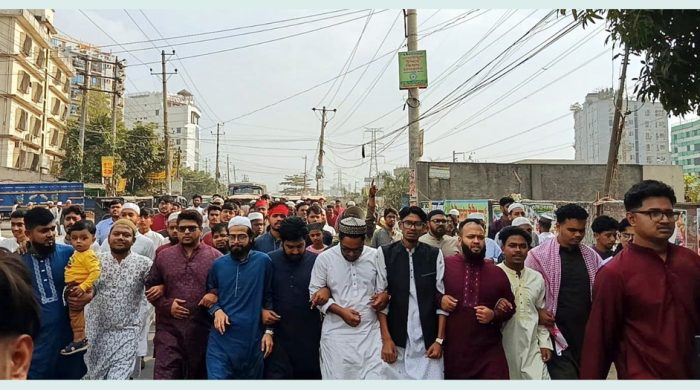 ইনকিলাব মঞ্চের মূখপাত্র ও ঢাকা-৮ আসনের স্বতন্ত্র প্রার্থী শরীফ ওসমান হাদির ওপর বর্বরোচিত হামলা ও তার শাহাদাতের প্রতিবাদে বিক্ষোভ করেছে মহানগর জামায়াত। শুক্রবার (১৯ ডিসেম্বর) বাদ জুম’আ নারায়ণগঞ্জ মহানগরী জামায়াতে