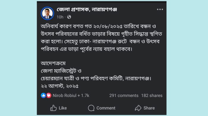 ঢাকা-নারায়ণগঞ্জ রুটে ভাড়া বৃদ্ধির সিদ্ধান্ত স্থগিত