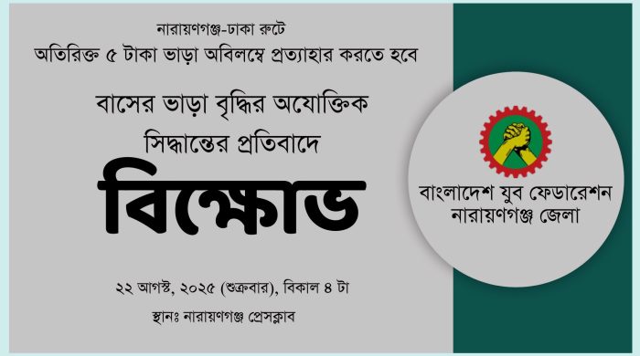 বাস ভাড়া বৃদ্ধির প্রতিবাদে নারায়ণগঞ্জ জেলা যুব ফেডারেশনের বিক্ষোভ শুক্রবার