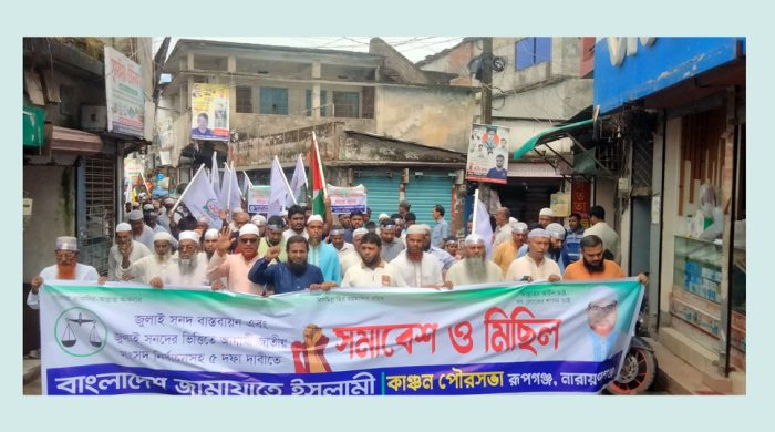 বাংলাদেশ জামায়াতে ইসলামীর কেন্দ্র ঘোষিত কর্মসূচির অংশ হিসেবে পাঁচ দফা দাবি আদায়ের লক্ষ্যে রূপগঞ্জে বিক্ষোভ মিছিল ও সমাবেশ করেছে উপজেলা জামায়াতে ইসলামী। শুক্রবার (৩ অক্টোবর) সকাল ১১ টায় রূপগঞ্জ উপজেলা